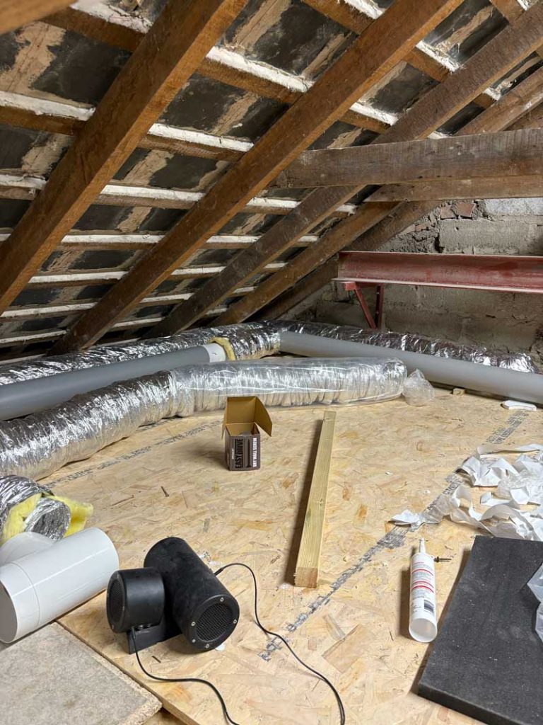 One big challenge was ventilation. The house had no mechanical system, and windows were often left shut in the colder months. The windows do not seem to last long in Newquay, being by the coast! Plus, the trickle vents all seized up, leading to condensation and mould buildup. Installing MVHR involved carefully running ductwork through tight ceiling spaces and boxed-in voids without compromising on aesthetics. It was tricky, but completely worth it.